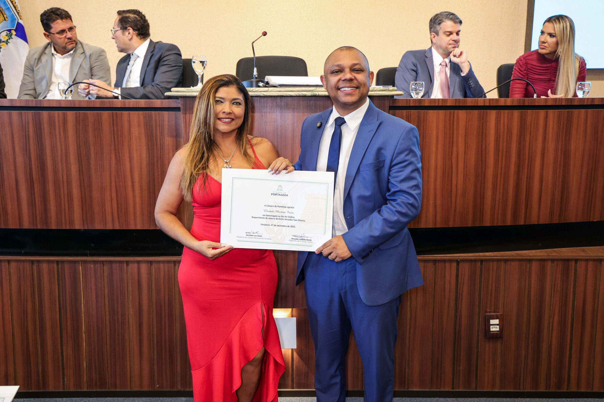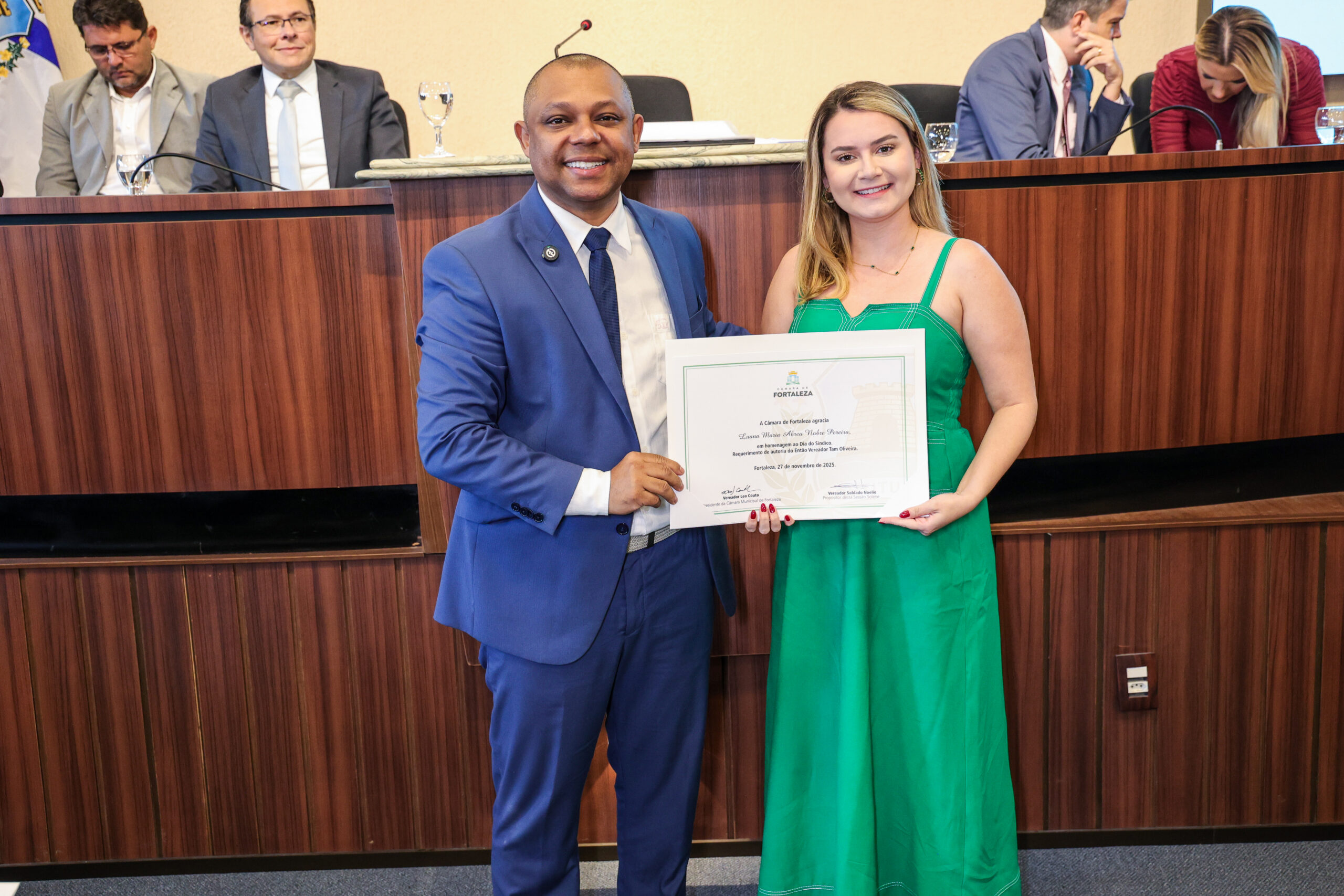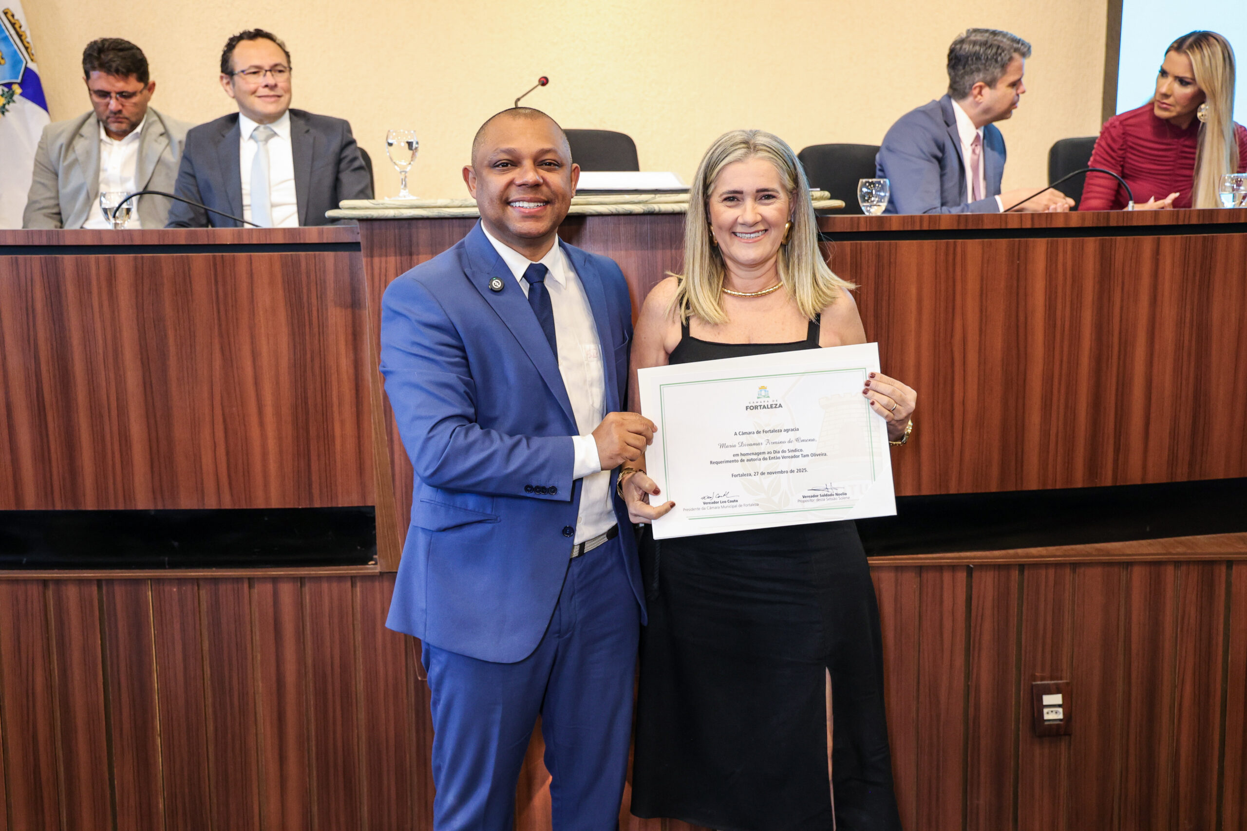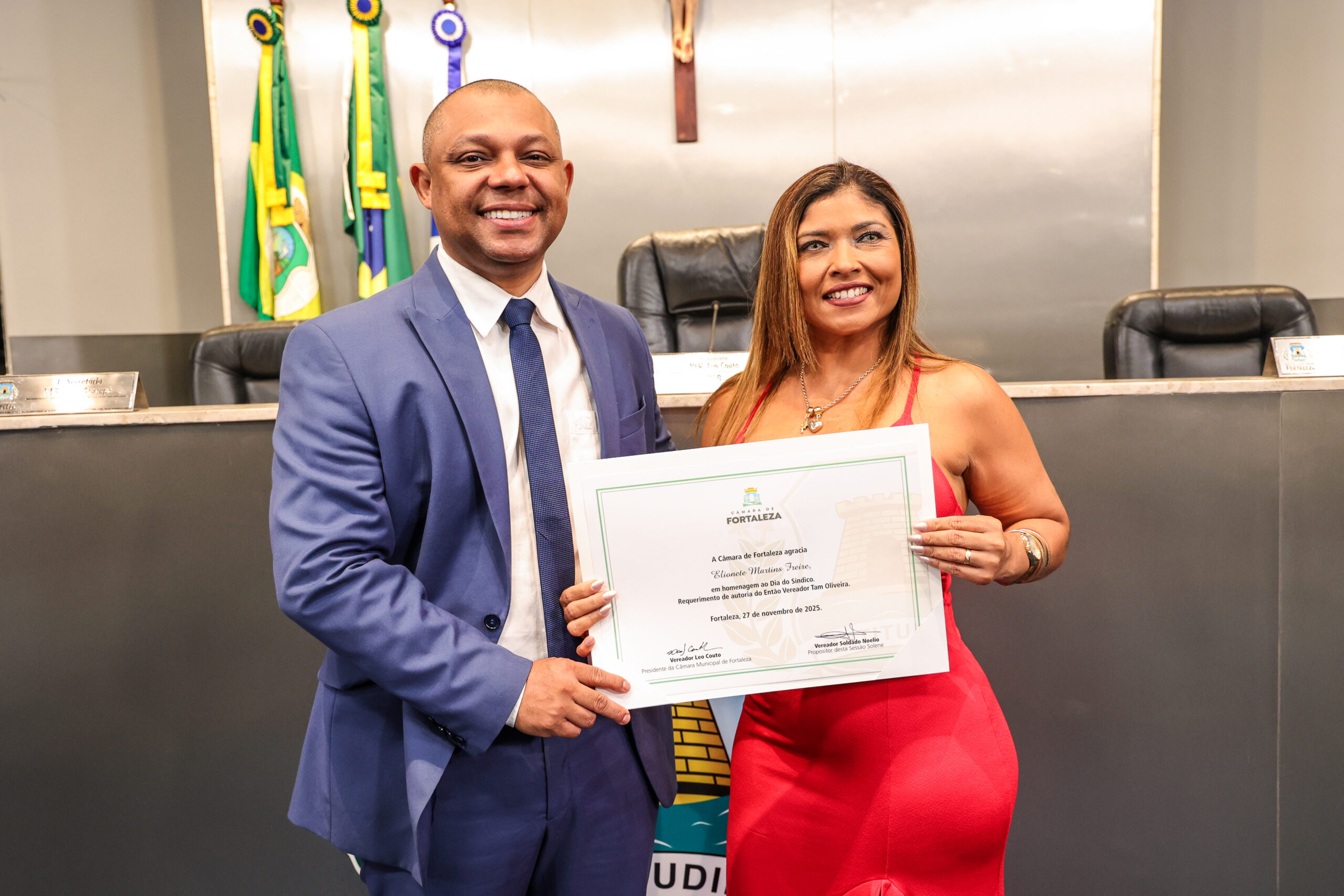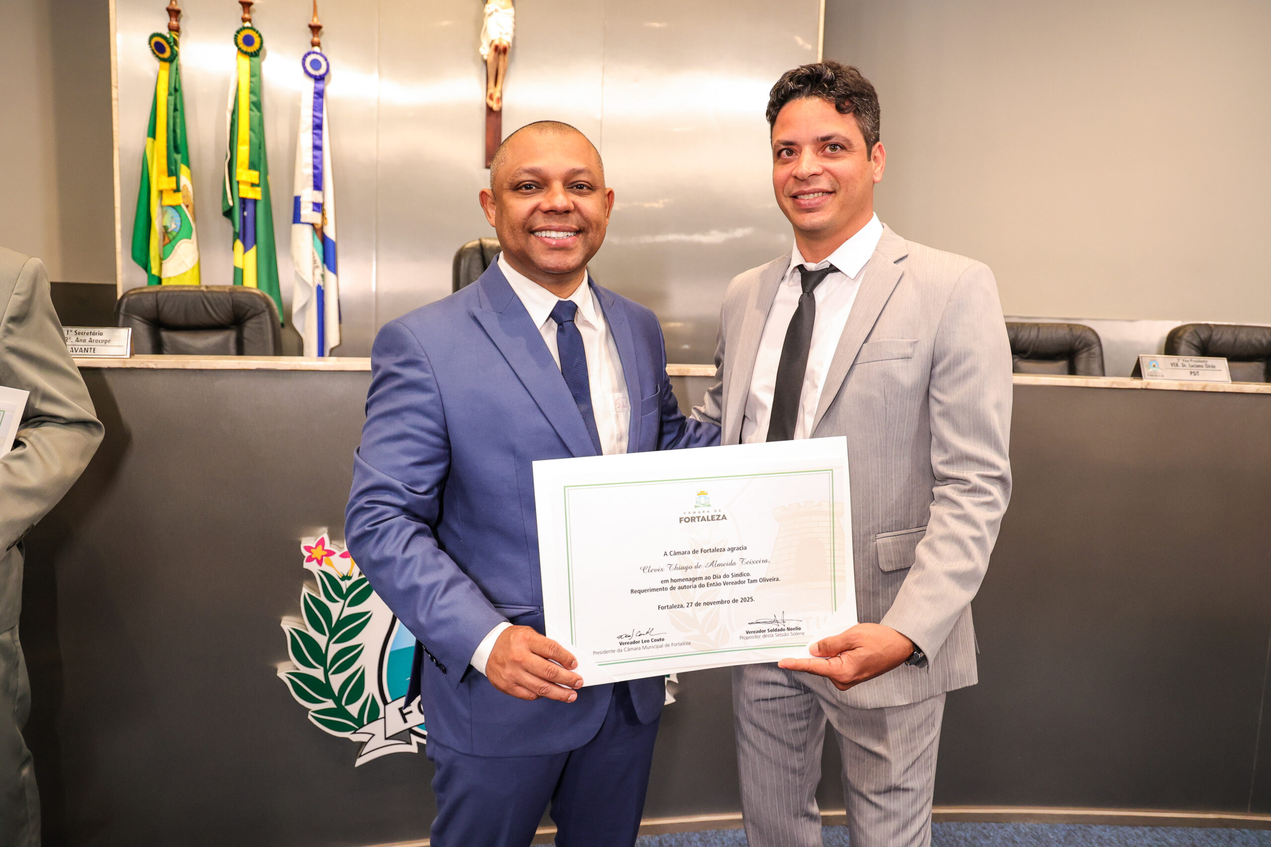 A tarde de ontem foi marcada por reconhecimento e prestígio na Câmara Municipal de Fortaleza, onde síndicos que se dedicam diariamente à vida em comunidade receberam merecidas homenagens. O requerimento, de iniciativa do vereador Soldado Noélio, foi atendido pelo presidente da Câmara, Léo Couto, e a solenidade foi conduzida pelo próprio Soldado Noélio, que reforçou a importância dos síndicos para o bom funcionamento dos condomínios na capital.
