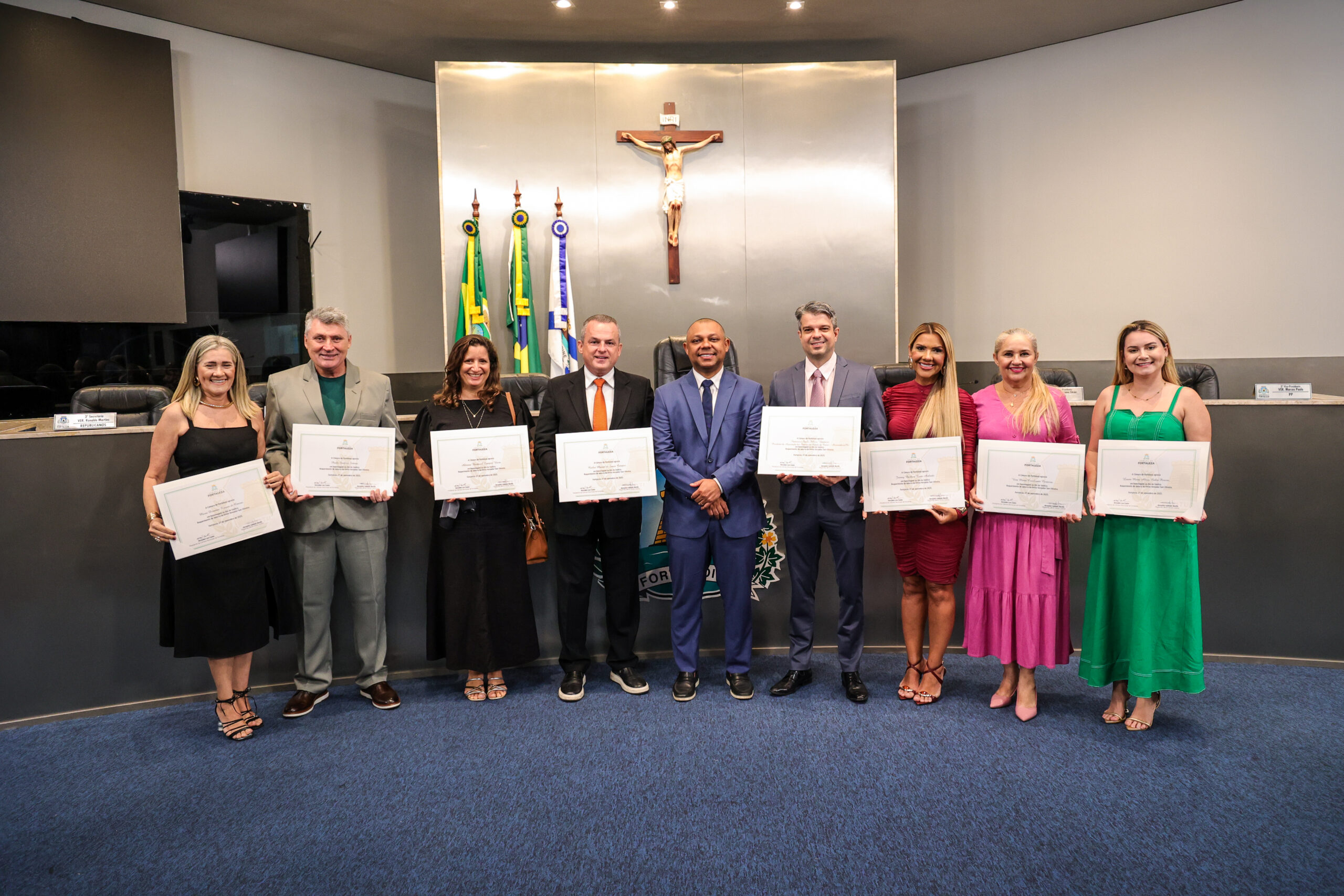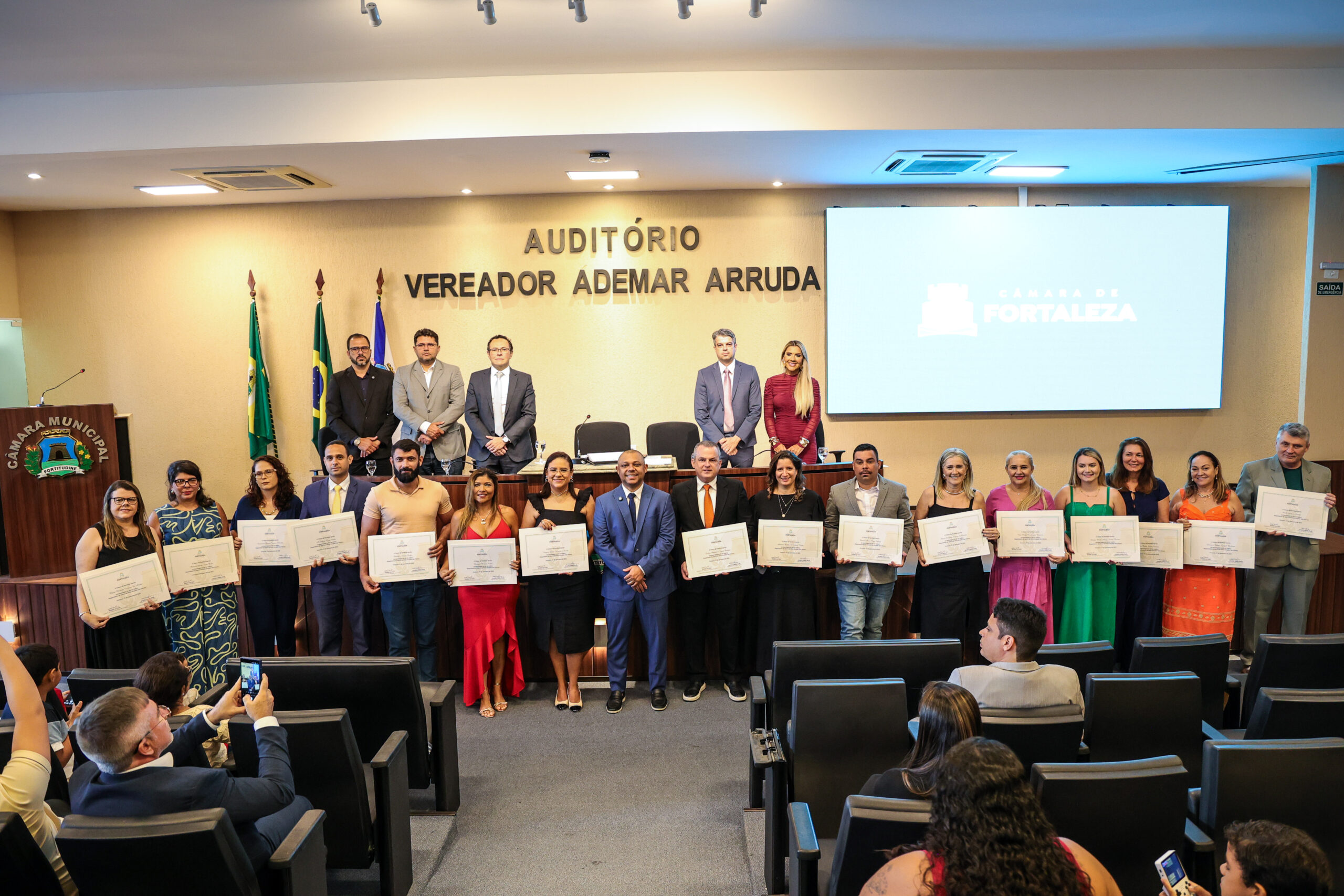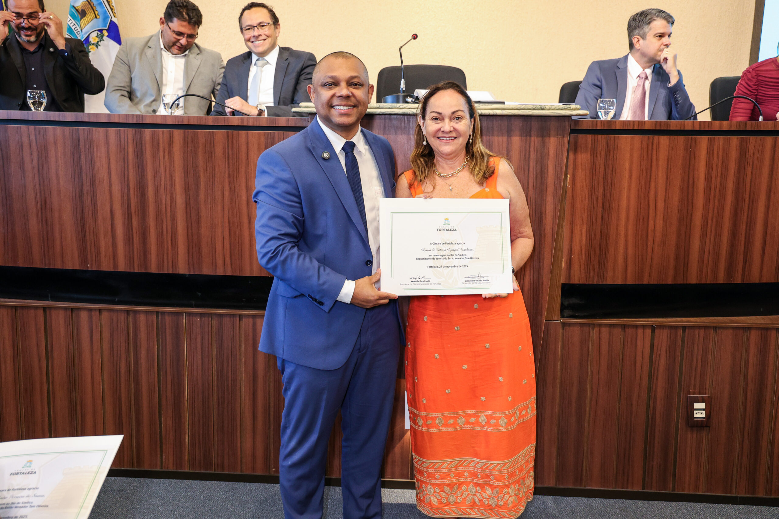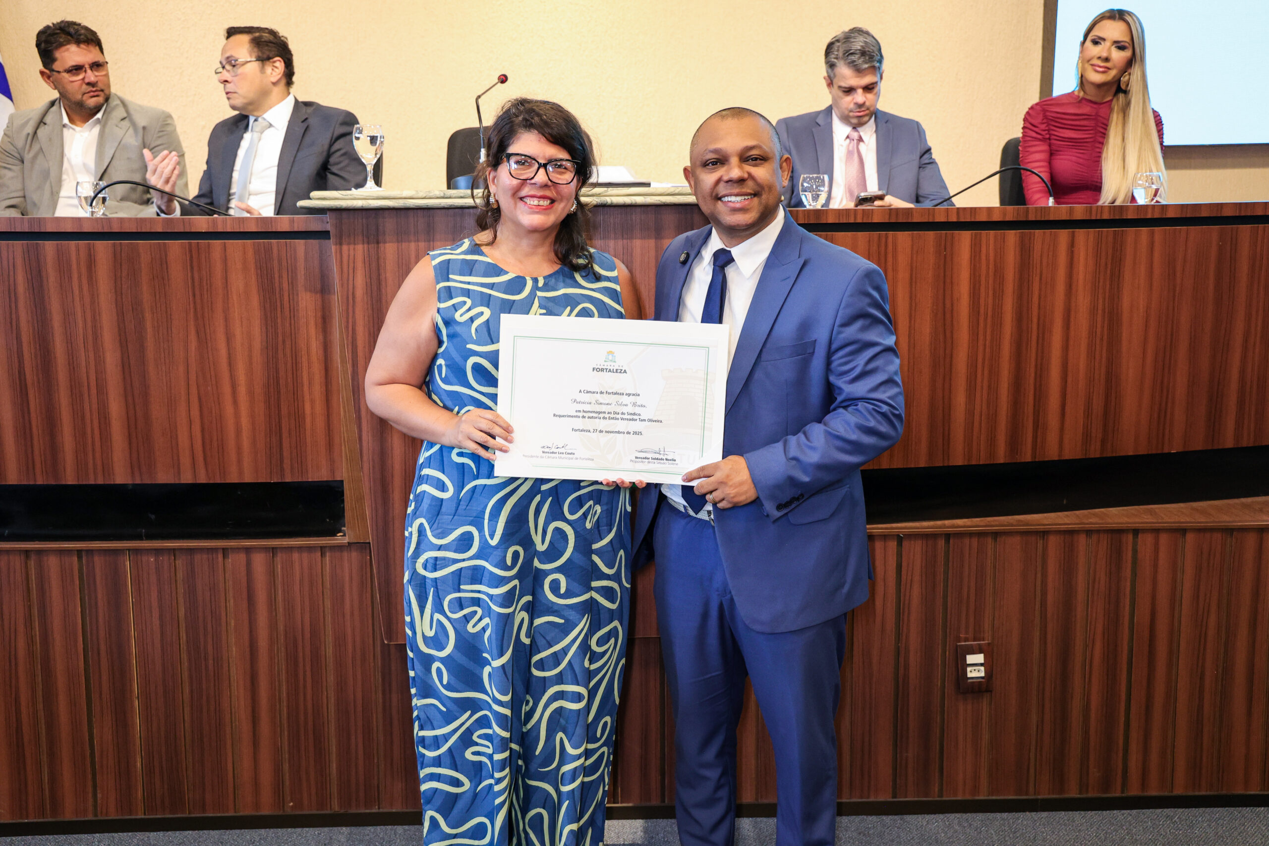 A tarde de ontem foi marcada por reconhecimento e prestígio na Câmara Municipal de Fortaleza, onde síndicos que se dedicam diariamente à vida em comunidade receberam merecidas homenagens. O requerimento, de iniciativa do vereador Soldado Noélio, foi atendido pelo presidente da Câmara, Léo Couto, e a solenidade foi conduzida pelo próprio Soldado Noélio, que reforçou a importância dos síndicos para o bom funcionamento dos condomínios na capital.