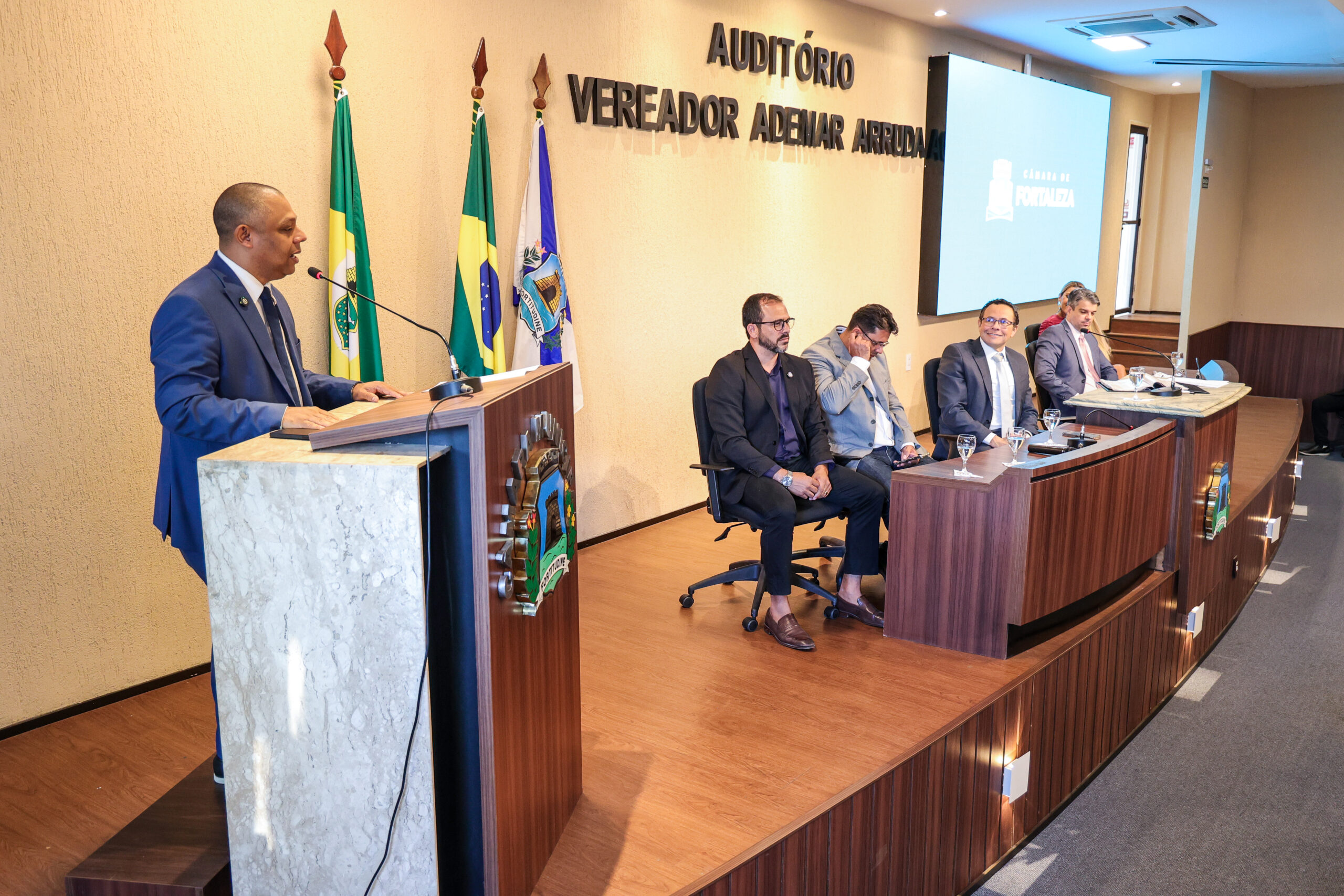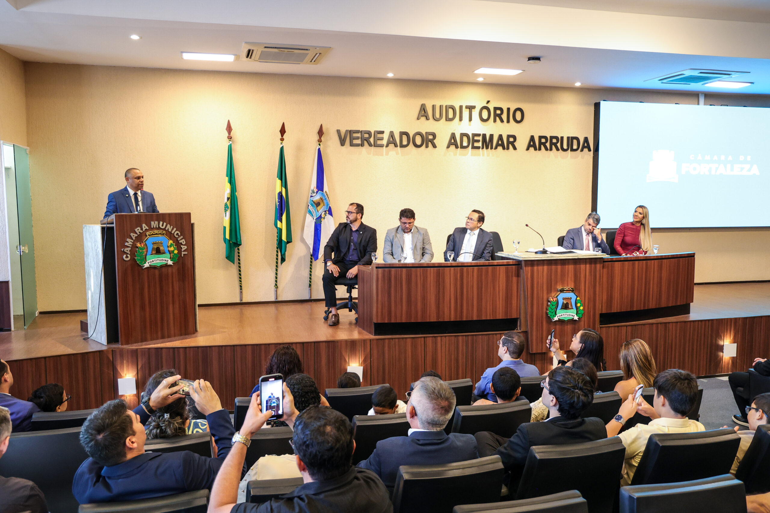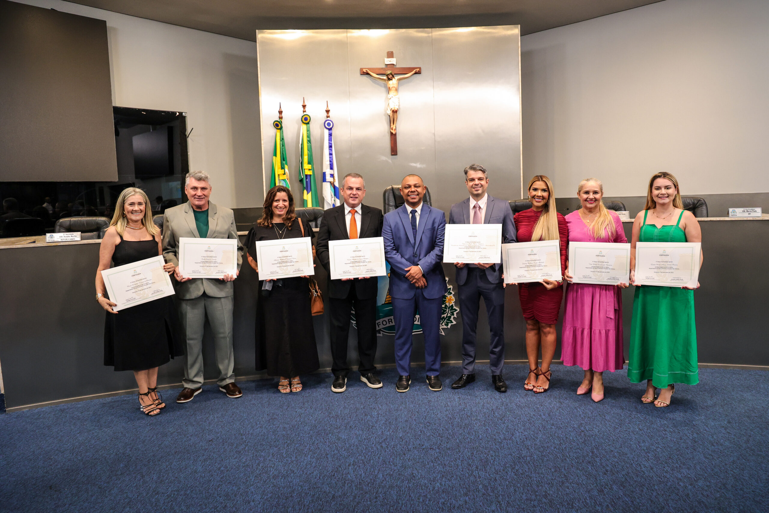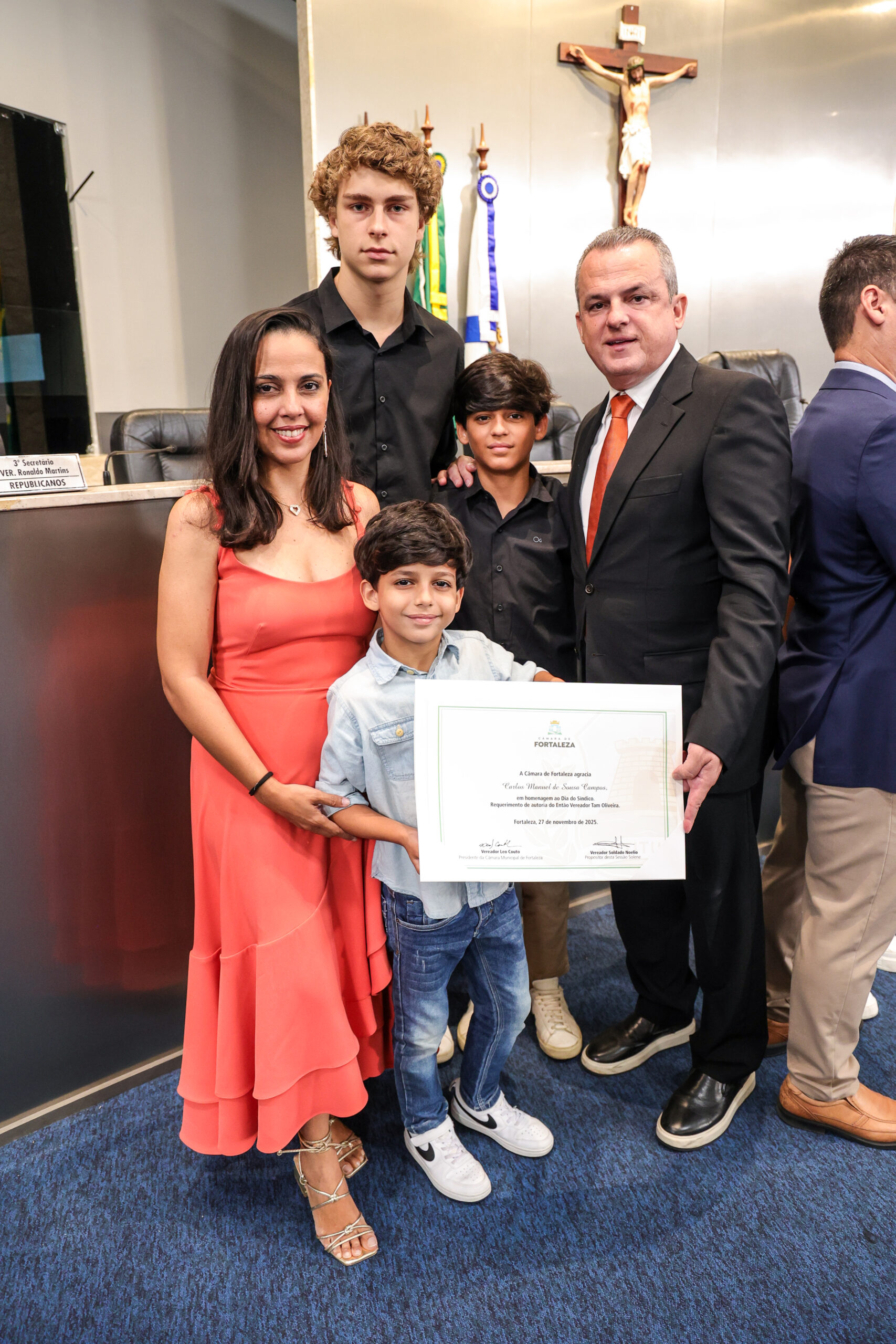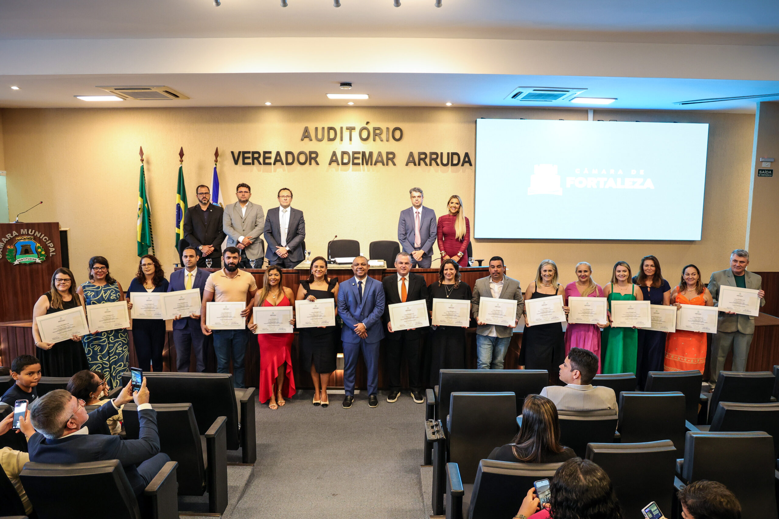 A tarde de ontem foi marcada por reconhecimento e prestígio na Câmara Municipal de Fortaleza, onde síndicos que se dedicam diariamente à vida em comunidade receberam merecidas homenagens. O requerimento, de iniciativa do vereador Soldado Noélio, foi atendido pelo presidente da Câmara, Léo Couto, e a solenidade foi conduzida pelo próprio Soldado Noélio, que reforçou a importância dos síndicos para o bom funcionamento dos condomínios na capital.
